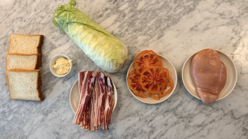 - Il Pollo : Nel Club Sandwich, il petto di pollo (o tacchino) aggiunge la parte proteica neutra che trasforma uno spuntino in un pasto completo, assorbendo i succhi degli altri ingredienti.