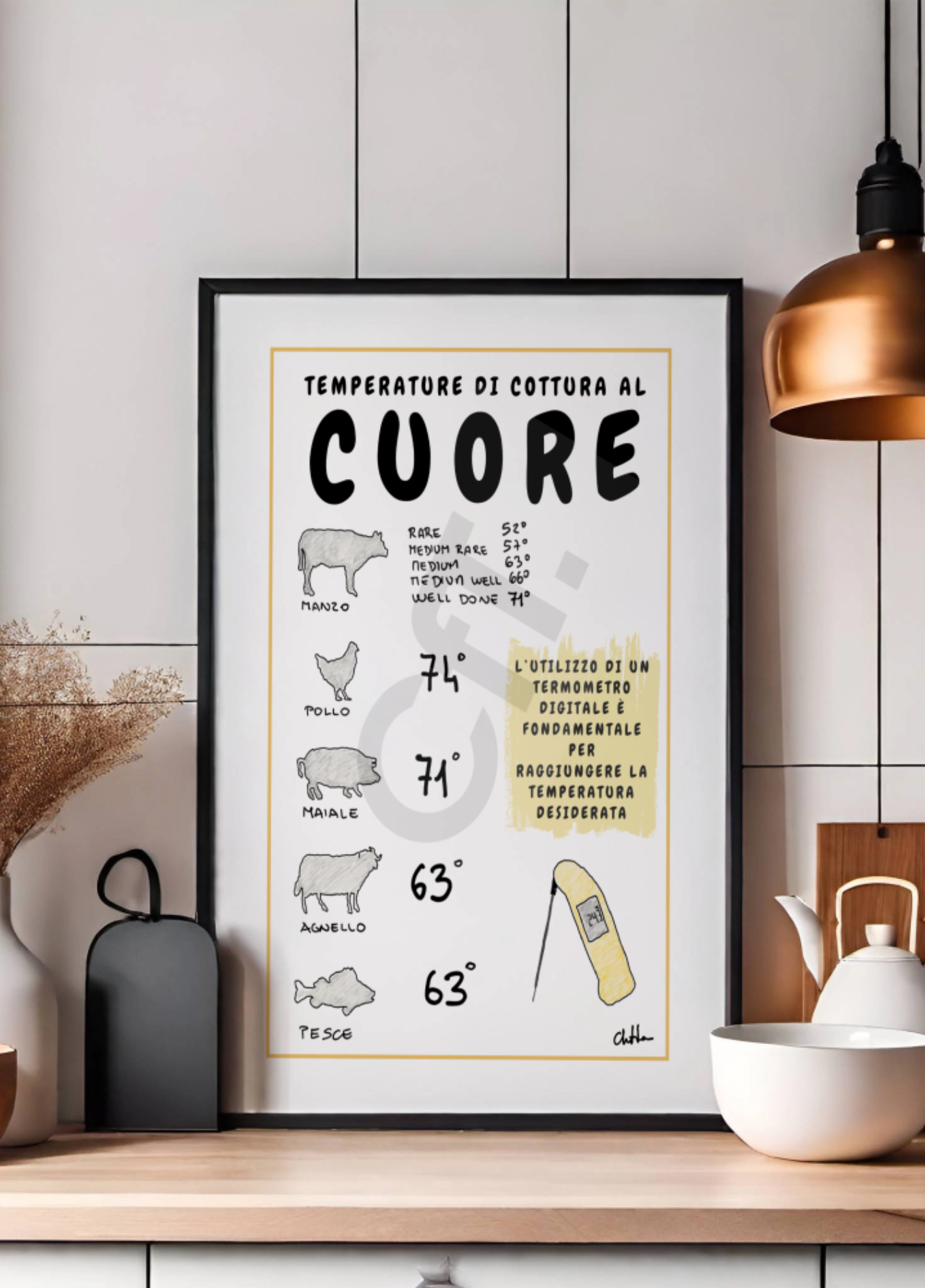 Decora la tua cucina con le illustrazioni di Cheftara, sul retro troverai anche un QR code per raggiungere direttamente la pagina della ricetta!